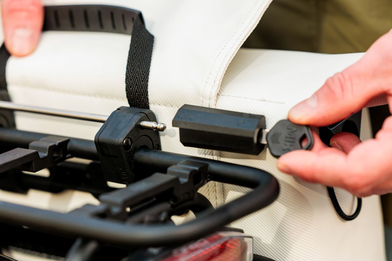 NetherlandsIdeal system for easily attaching bags. You simply click the bags onto your carrier and remove them just as easily. Since the bags are no longer secured to the carrier with straps, I can easily swap them or leave them at home. Perfect, right? And sometimes we take the bikes with us on a bike rack. Instead of having those flapping bags during the car ride, they are now safely placed on the back seat.
